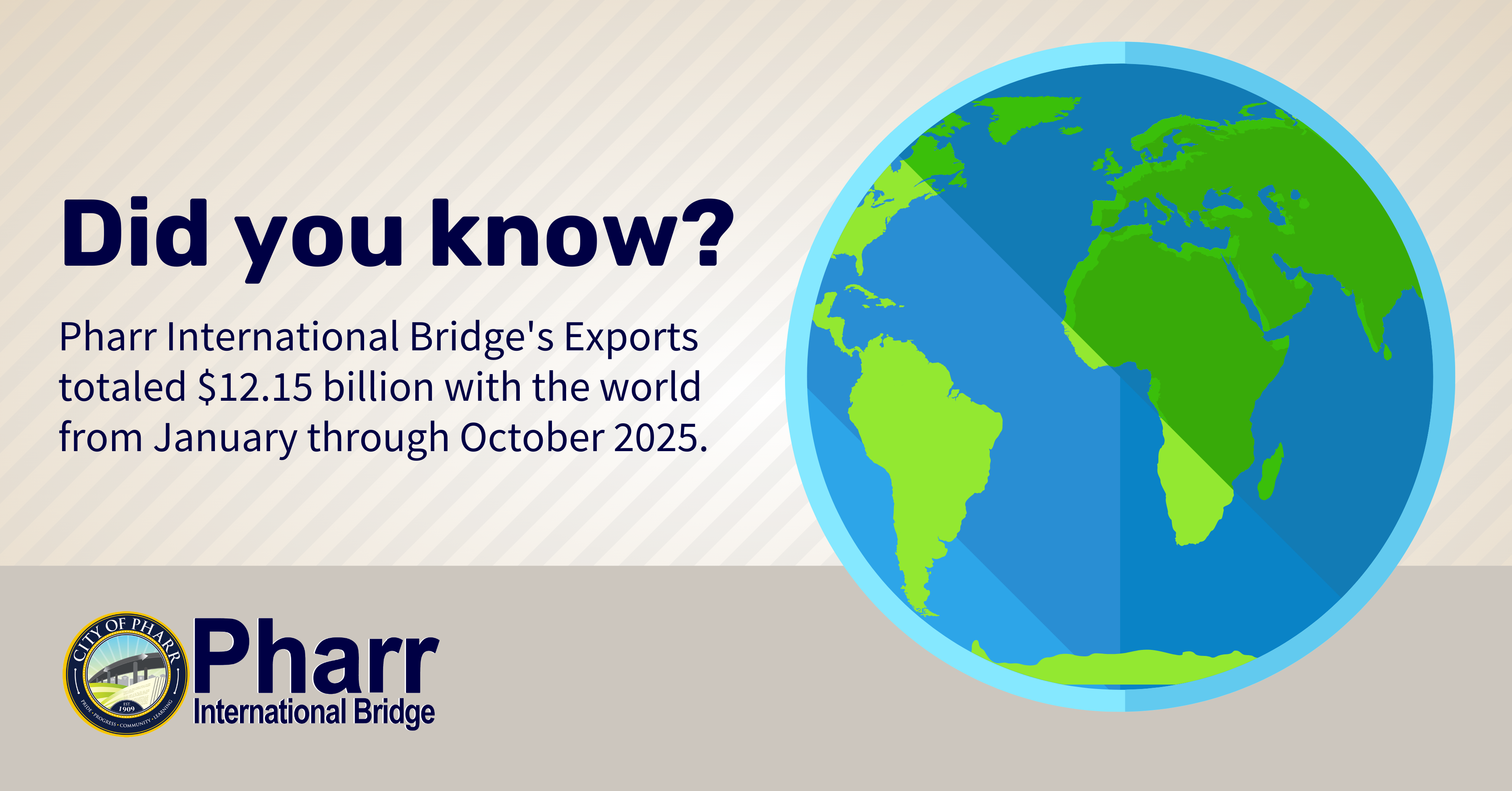 The Pharr International Bridge connects U.S. 281 to the City of Reynosa, Tamaulipas making Pharr one of the most attractive logistical points in the region.